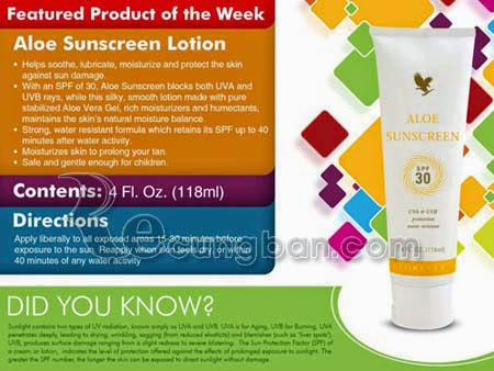 Kem chống nắng Aloe Sunscreen đã đáp ứng được yêu cầu đó. Được kết hợp các thành phần tự nhiên, kem chống nắng Aloe Sunscreen giúp làm mềm mại, bôi trơn, giữ ẩm và bảo vệ da dưới ánh nắng mặt trời cũng như khi tiếp xúc với gió một cách rất hiệu quả. Với chỉ số chống nắng SPF 30, kem chống nắng Forever Aloe Suncreen tổng hợp cả chất chống nắng UVA và UVB, đồng thời nó còn chứa chất gel lô hội ổn định tinh khiết, chất giữ ẩm và làm ẩm, giúp duy trì sự cân bằng độ ẩm tự nhiên cho làn da.